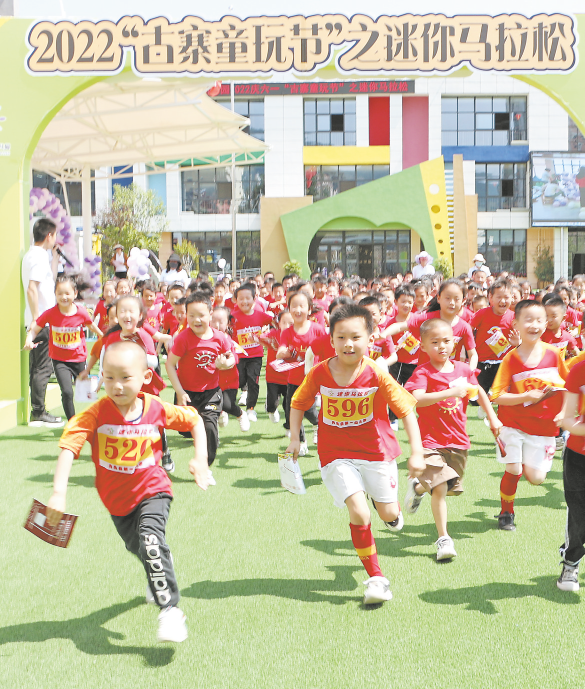 ④5月24日至27日,丹鳳縣第一幼兒園舉行慶“六一”古寨童玩節運動會,各班幼兒進行迷你馬拉松活動,慶祝自己的節日。 (本報記者 胡 蝶 攝)