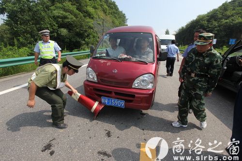 本網(wǎng)訊(記者 方 立 攝) 7月26日上午10時(shí)10分,商南“7·24”特大水災(zāi)造成縣城西郊一段高速公路懸空,公安干警、武警官兵緊急搶險(xiǎn)。一輛車(chē)號(hào)陜H-15909小面包車(chē),違章強(qiáng)闖安全警戒區(qū),輾壓多個(gè)警戒隔離墩。大災(zāi)官兵搶險(xiǎn),小車(chē)冒險(xiǎn)搶道,好險(xiǎn)、好牛!