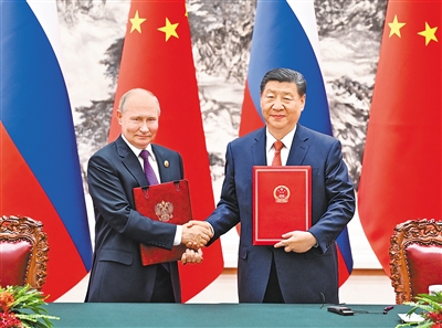 習近平強調(diào),中俄關(guān)系75年發(fā)展歷史得出的最重要結(jié)論,就是兩個相鄰的大國之間,必須始終弘揚和平共處五項原則,相互尊重、平等互信、照顧彼此關(guān)切,真正為雙方的發(fā)展振興相互提供助力。這既是中俄兩國正確相處之道,也是21世紀大國關(guān)系應(yīng)該努力的方向。中俄關(guān)系有著深厚的歷史積淀和堅實的民意基礎(chǔ),雙方要密切戰(zhàn)略協(xié)作和互利合作,堅定地走自己的發(fā)展道路,堅定維護國際公平正義。