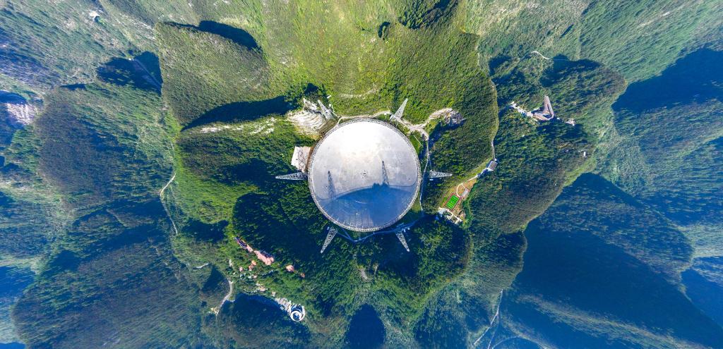 這是2024年9月25日拍攝的“中國天眼”全景(無人機照片,維護保養(yǎng)期間拍攝)。 新華社記者 歐東衢 攝