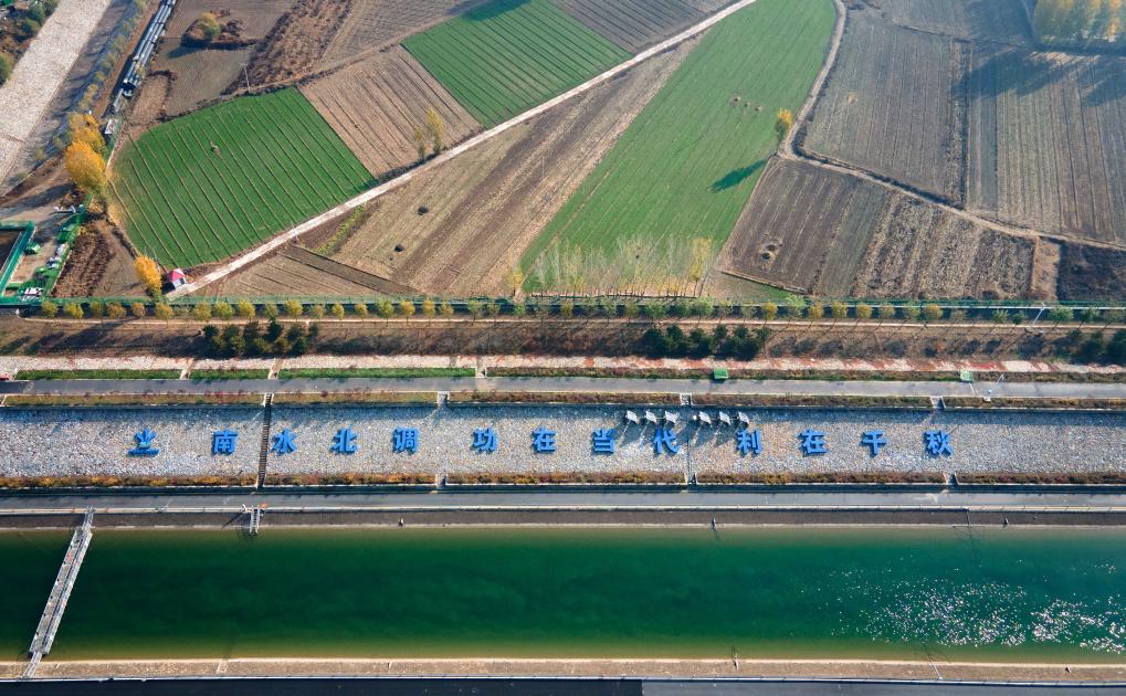 位于京冀交界處的南水北調中線工程總干渠(2024年11月14日攝,無人機照片)。 新華社記者 陳鐘昊 攝