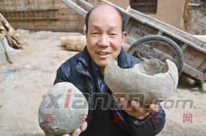 3月13日,記者在古城鎮(zhèn)某學(xué)校李老師家里看到,這枚圓石形狀較為怪異,狀如人頭模樣,外面有石質(zhì)外殼,外殼和圓石可分離,外殼厚約2.5厘米,最薄處為1厘米;圓石直徑約16厘米,重約4公斤。據(jù)介紹,這枚圓石是從沙河河灘挖出來(lái)的。經(jīng)比對(duì),與網(wǎng)上的恐龍蛋化石圖片很相似。所以不少人認(rèn)為可能就是一枚恐龍蛋,洛南幾位文物考古學(xué)者也贊同這一觀點(diǎn),不過(guò)他們也表示,需要更為專業(yè)的鑒定才能確定是否為恐龍蛋化石。(西安晚報(bào) 張紅中)