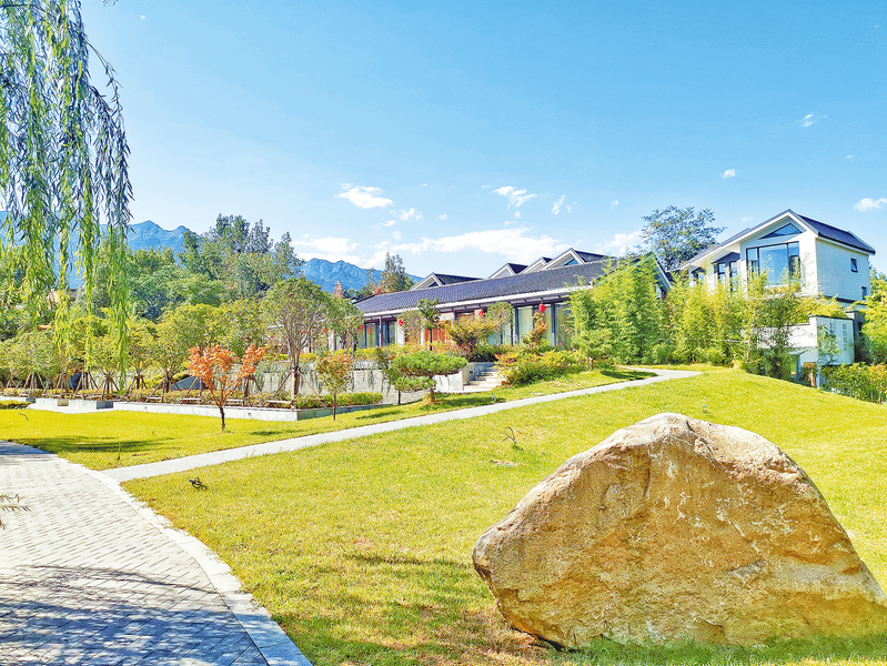 距方若·谷倉(cāng)集度假民宿不遠(yuǎn)處,同樣是利用閑置校園改造成的水麓藍(lán)山民宿,依山傍水,碧草如茵,這里庭院里的池塘、石階與花木相映,隱含著城市里少有的靜謐與禪意。水麓藍(lán)山民宿不僅獲評(píng)西安市精品民宿、藍(lán)田縣五星民宿,更成了游客心中的世外桃源,爭(zhēng)相來(lái)此打卡。