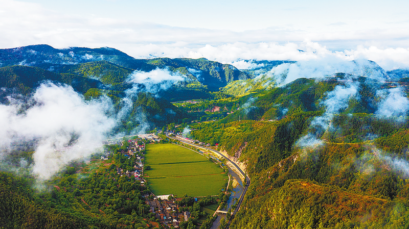 七八月份的商洛,天空湛藍,田野翠綠,一片生機盎然的景象。