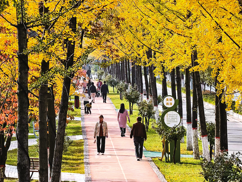 清晨的丹江邊上,晨光穿透薄霧灑向大地,銀杏葉在微風中閃著金色的光芒,棗紅的楓葉映在遠處碧藍的天空上,每片葉子中都蘊藏著一場盛大的秋天。市民們或慢跑、或練太極,身影在落葉紛飛的林蔭道中形成了一幅畫。