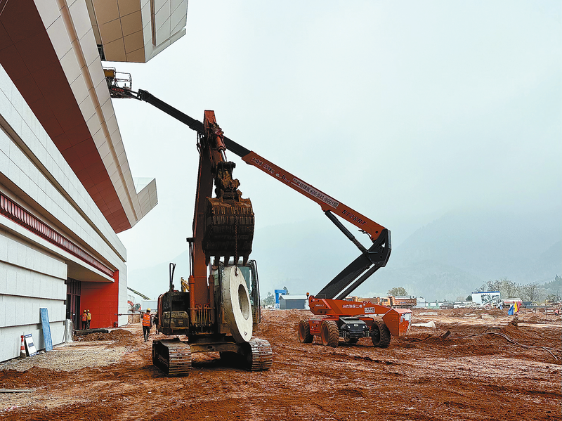 作為西十高鐵商洛西站核心配套工程的重要組成部分,站前廣場正加快建設,助力商洛加速邁入高質量發展的“高鐵時代”。圖為11月4日商洛西站站前廣場施工現場,各個環節正有條不紊地推進中。 (本報記者 謝 非 攝)