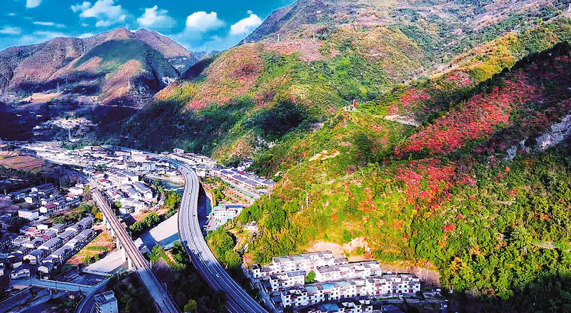 △在柞水縣下梁鎮(zhèn),紅綠相間的葉子層層疊疊點(diǎn)綴在山間,把小鎮(zhèn)周?chē)兂闪瞬噬h(yuǎn)遠(yuǎn)望去煞是美麗。