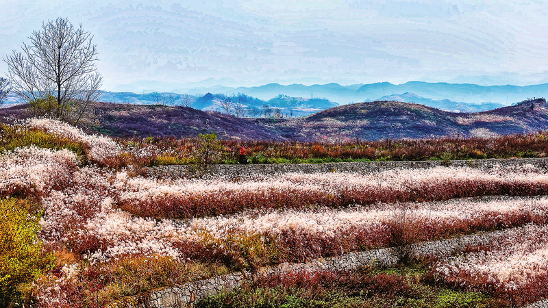 △在商州區(qū)大荊鎮(zhèn),山坡上的蘆葦隨風(fēng)搖曳,靜謐的山坡因此多了幾分浪漫和生機(jī)。
