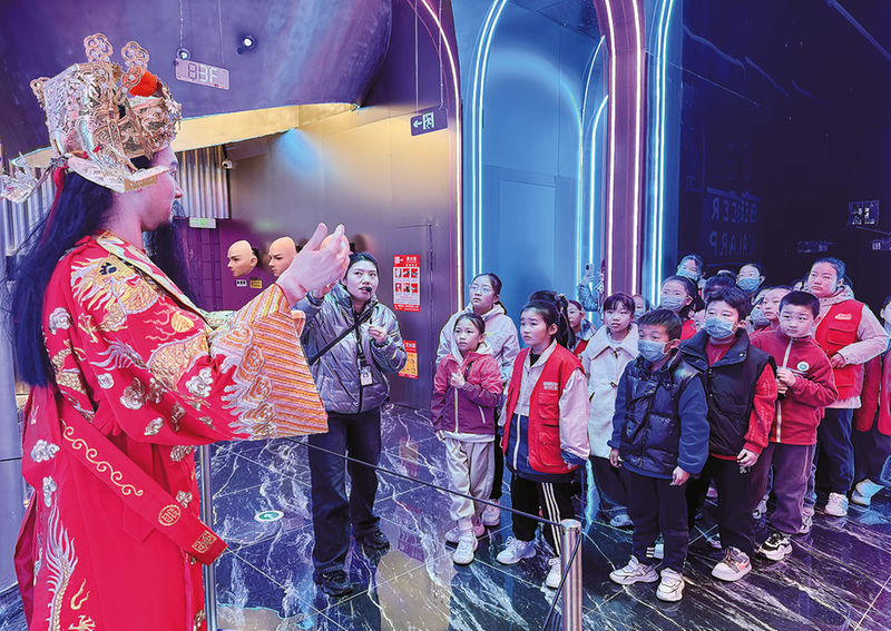 隨后,愛因斯坦仿生機(jī)器人吸引了大家的目光。通過先進(jìn)的面部動態(tài)捕捉系統(tǒng),機(jī)器人能夠?qū)崟r捕捉每個人的面部表情并進(jìn)行精準(zhǔn)模仿。“這也太厲害了吧!它做出的表情和我們的一模一樣!”幾名小記者激動地說。緊接著,在講解員的帶領(lǐng)下,小記者穿過激光通道,李白、杜甫等歷史名人以機(jī)器人形態(tài)呈現(xiàn)在大家面前。“好雨知時節(jié),當(dāng)春乃發(fā)生。隨風(fēng)潛入夜,潤物細(xì)無聲……”看著臺上的杜甫機(jī)器人,小記者情不自禁地吟誦起經(jīng)典詩句。