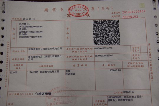 本網(wǎng)訊 10月12日,陜西晨光置業(yè)有限公司、丹源電力集團(tuán)公司分別為客戶開出了金額為5萬元、50萬元的銷售不動產(chǎn)、建筑業(yè)網(wǎng)絡(luò)在線發(fā)票,這是商洛市開出的首張銷售不動產(chǎn)和建筑業(yè)網(wǎng)絡(luò)在線發(fā)票,標(biāo)志著全省網(wǎng)絡(luò)在線開票系統(tǒng)在商洛成功上線運(yùn)行。