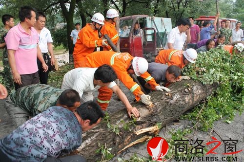 鎮上值班干部迅速前往事發現場處理,此時已經有五十多臺來往車輛滯留在公路上,秩序異常混亂。鎮政府領導一邊給縣消防中隊打電話,一邊聯系村組干部,組織旁觀群眾,挪動橫倒在路上的楊樹,在鎮上干部的帶動下,部分村民自發從家里拿來斧頭、鋸子等工具,投入到緊張的保暢通工作中。縣消防中隊趕到現場,立即展開緊張的疏通工作。圍觀的群眾和一些車主也積極加入其中,三個小時后,橫躺在公路上的六棵直徑八十公分的楊樹被鋸斷移至路旁,道路恢復了暢通,一百多輛滯留車輛啟程上路。