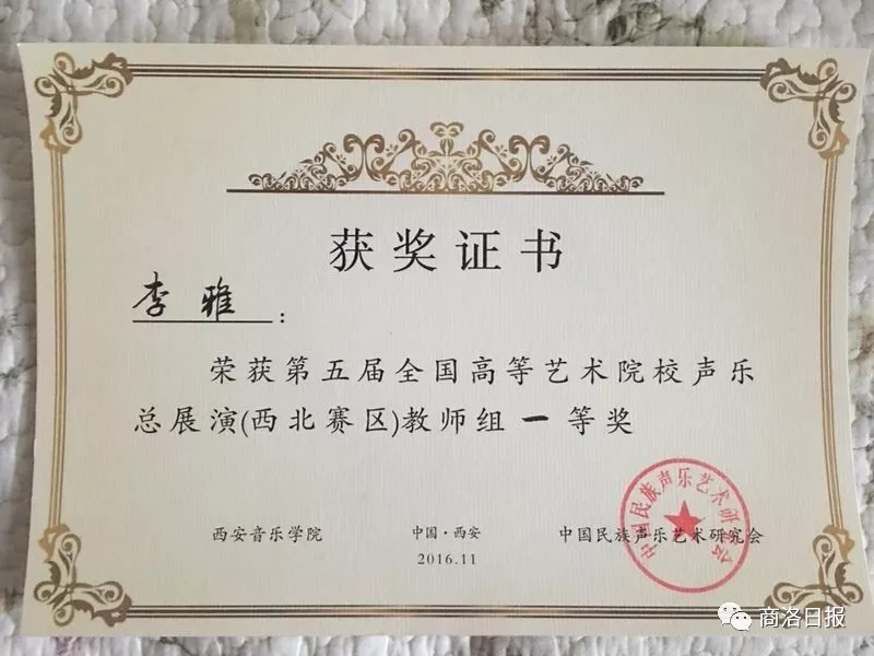 李雅曾多次榮獲陜西省聲樂大賽民族唱法一等獎