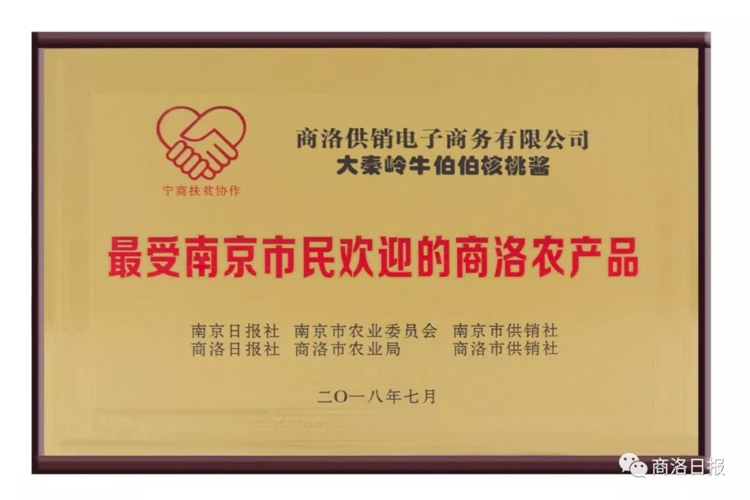 大秦嶺牛伯伯品牌核桃醬被授予“最受南京市民歡迎的商洛農(nóng)產(chǎn)品”榮譽(yù)稱號(hào)