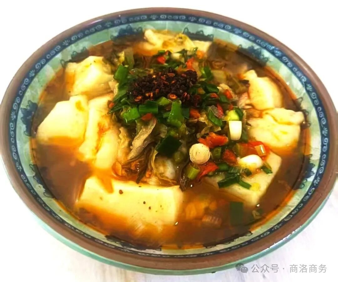- 洛南攪團:玉米面慢攪而成的軟糯美味,介于涼粉和年糕之間的奇妙口感,澆上發酵酸水漿湯,撒上韭菜末和油潑辣子,酸辣開胃,解膩又頂飽。