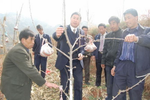 大粒櫻桃是商州近年新興的水雜果產業之一,具有顯著地經濟效益和廣闊的市場前景。商洛市商州區張村鎮任家后村近年來不斷發展壯大栽植大粒櫻桃樹,目前已經發展近100畝,部分果農們嘗到了種植大櫻桃帶來的經濟效益,進而帶動其他農戶發展該產業,紛紛要求來年商洛市農科所能為他們選育出好的品種,提供果樹栽培管理技術、果園管理技術、市場營銷渠道等。把該村的“一村一品”做大做強。圖為商洛市農科所近期組織技術干部到任家后大粒櫻桃示范基地,開展拉枝開角、花前復剪、防病蟲、防霜凍等大粒櫻桃果園春季管理技術宣傳服務。