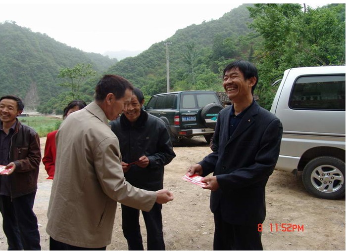 黨員干部扶貧結對子是扶貧工作的一項重要內容。今年市環保局24名黨員通過結對子幫助貧困戶脫貧致富、奔小康。圖為市環保局黨組書記、局長翁同德向貧困戶捐贈扶持資金。