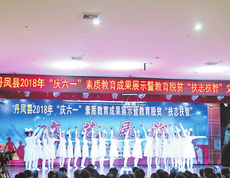 丹鳳縣舉辦了2018年“慶六一”素質(zhì)教育成果展示暨“扶志扶智”文藝匯演活動。各中小學(xué)校高度重視,認(rèn)真組織,制作書法、繪畫、剪貼畫等作品上萬件,設(shè)計制作手工科技等作品3000余件,編制課件、活動案例200余篇。參展作品種類眾多,表現(xiàn)形式豐富多彩,展示了全體同學(xué)努力學(xué)習(xí)、全面發(fā)展的熱情,反映了廣大師生對美的渴望、對祖國的無限熱愛,更體現(xiàn)了同學(xué)們立志脫貧的信心和決心。“扶志扶智”文藝匯演活動由縣科教體局主辦,縣青少年校外活動中心和第三小學(xué)承辦,并得到了縣委宣傳部、縣總工會、團縣委、縣扶貧局、縣婦聯(lián)會、縣關(guān)工委、縣科協(xié)等單位的大力支持。舉行了文藝展演活動,全縣共推選出20個優(yōu)秀節(jié)目參加展演,節(jié)目豐富多樣,涵蓋了舞蹈、情景劇、小品、快板、武術(shù)、演唱等多個類型。通過中國移動“和商務(wù)直播”進(jìn)行現(xiàn)場直播,點擊率超過萬人次。