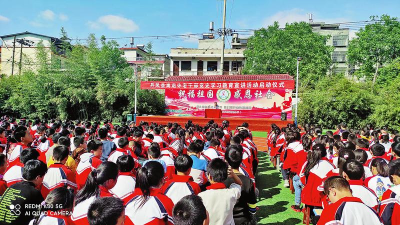 4月22日,丹鳳縣黨史學習教育“五老”宣講團走進縣第四小學,講述紅色故事,弘揚革命精神,傳承紅色基因,迎接建黨100周年。(索志鋒 攝)