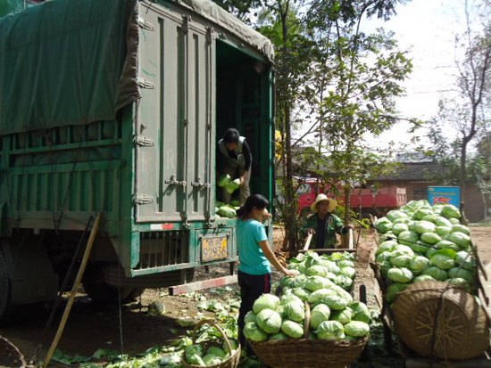 本網(wǎng)訊(馬宏濤 劉亞亞) 洛南縣景村鎮(zhèn)農(nóng)民種植的甘藍(lán)質(zhì)優(yōu)價廉,加之交通便利。近期吸引了許多河南客商來到該鎮(zhèn)收購甘藍(lán)。圖為客商正在景村收購甘藍(lán)運(yùn)往河南南陽。