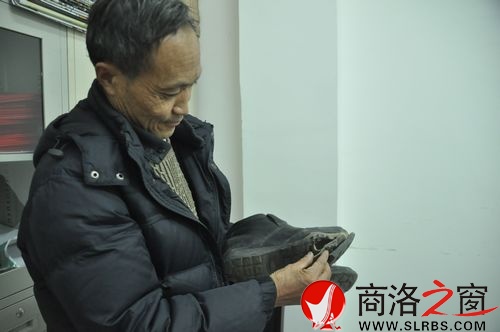 李德應拿起一雙破皮鞋告訴記者,15年來已穿破了30多雙。