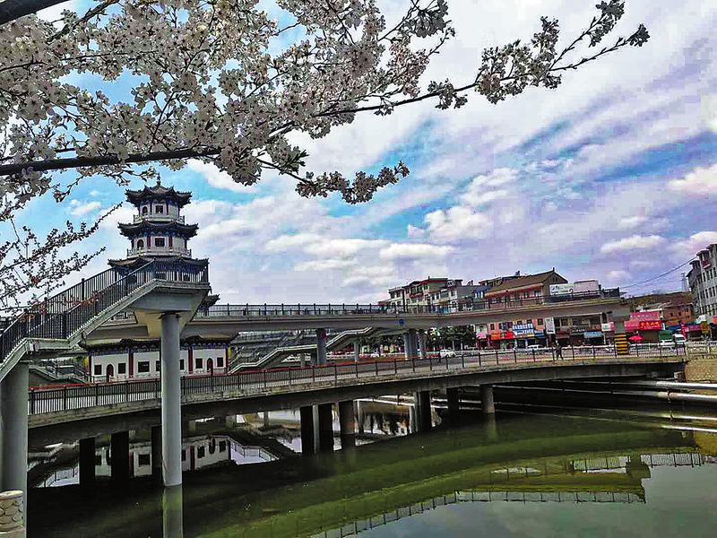 淅瀝的春雨過后,洛南縣河兩岸柳絲飄飄,綠意盈盈;柳條壓抑著噴發(fā)的渴望,搖曳著柔軟的身姿;八卦橋下碧波粼粼,花紅柳綠,倒影如畫。生活在如此美境中的人們,心情也舒朗明快。
