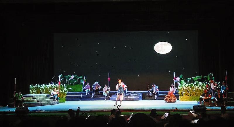 在舞美設(shè)計(jì)上,新編排的《洪湖赤衛(wèi)隊(duì)》充分調(diào)動(dòng)現(xiàn)代聲光電的舞臺(tái)手段,營造出新的效果。“人心之動(dòng),物使之然也”。舞臺(tái)場景道具設(shè)計(jì)是推動(dòng)情節(jié)、表現(xiàn)人物的重要手段。新編劇既運(yùn)用傳統(tǒng)的舞美材料虛擬場景,又注重用現(xiàn)代舞臺(tái)燈光來造型、營造氛圍,使光、線、形、體、色融為一體,讓觀眾在觀看戲劇表演的同時(shí),充分享受藝術(shù)氛圍之美,與舞臺(tái)表演形成共鳴。