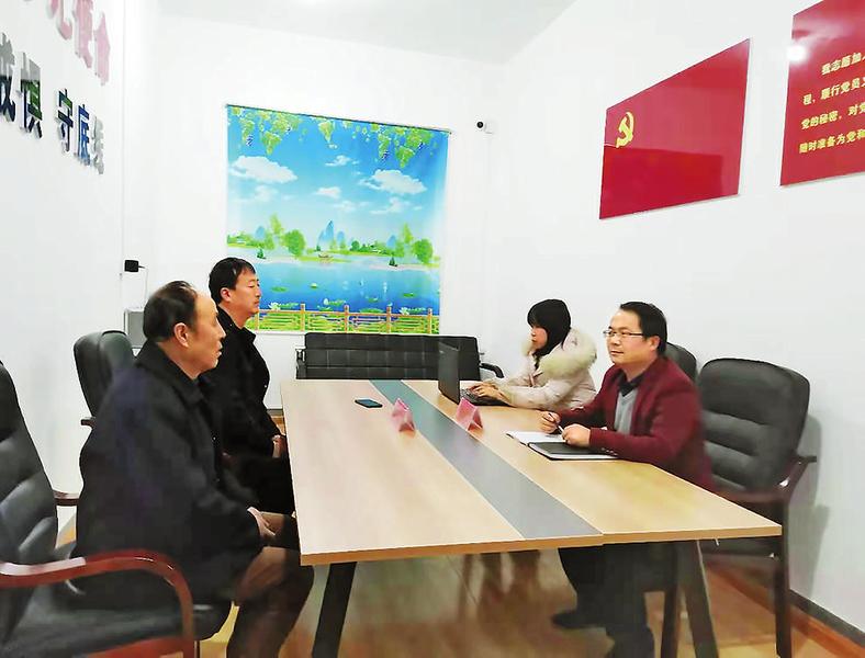 洛南縣景村鎮(zhèn)紀檢監(jiān)察干部就村兩委會換屆前準備工作與社區(qū)干部進行事前提醒談話。(張少英攝)