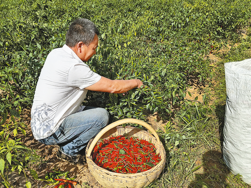 永豐鎮(zhèn)王村村民在辣椒基地采摘朝天椒