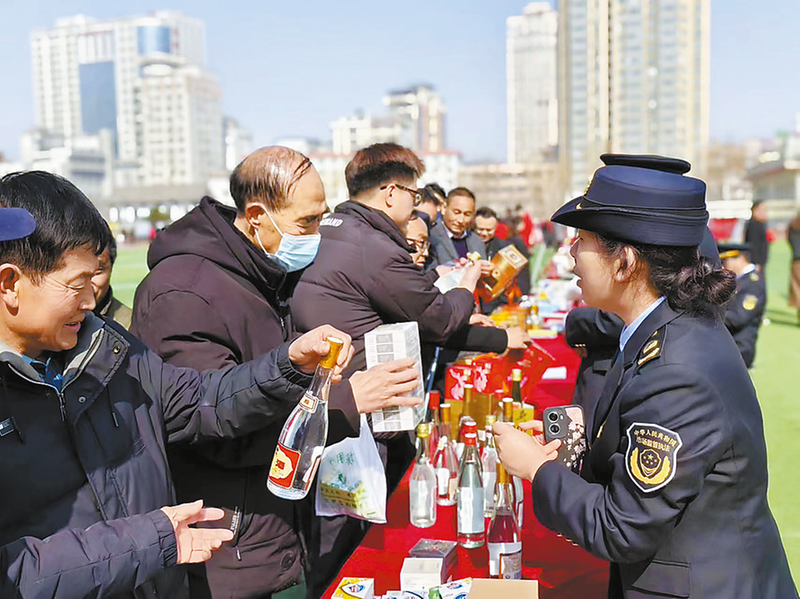 △在民法典宣傳月期間,洛南縣市場監管局工作人員向市民介紹假冒偽劣商品鑒別常識,宣傳消費者權益保護有關法律法規。