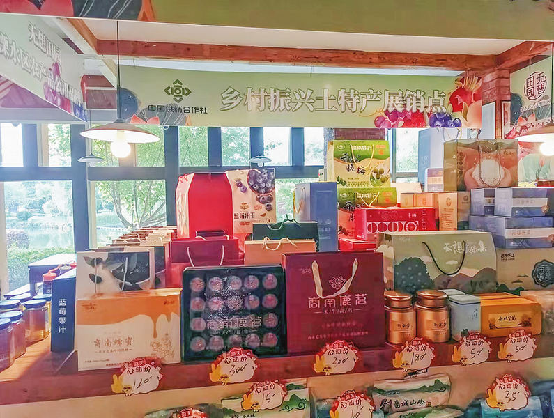 南京市溧水區(qū)寶塔路的商洛農(nóng)特產(chǎn)品展銷(xiāo)館內(nèi),商南茶葉、木耳、香菇等商南農(nóng)特產(chǎn)品琳瑯滿目。