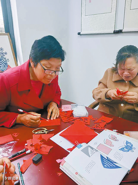 “社區(qū)喜歡剪紙的老人有空就去我那里學習,有時三四個,有時一兩個,帶的小孩有興趣學的話我也會教。現(xiàn)在他們可以剪一些基礎(chǔ)的,等他們學會了可以根據(jù)自己的技術(shù)水平創(chuàng)造作品并進行售賣,都能有一定的收入,我在教他們的同時也可以提升自己的剪紙技術(shù)。通過相互學習,讓老人從中獲得非遺傳承,生活上也能更加豐富多彩一些,有利于他們更加快樂健康生活。”熊紅艷說。