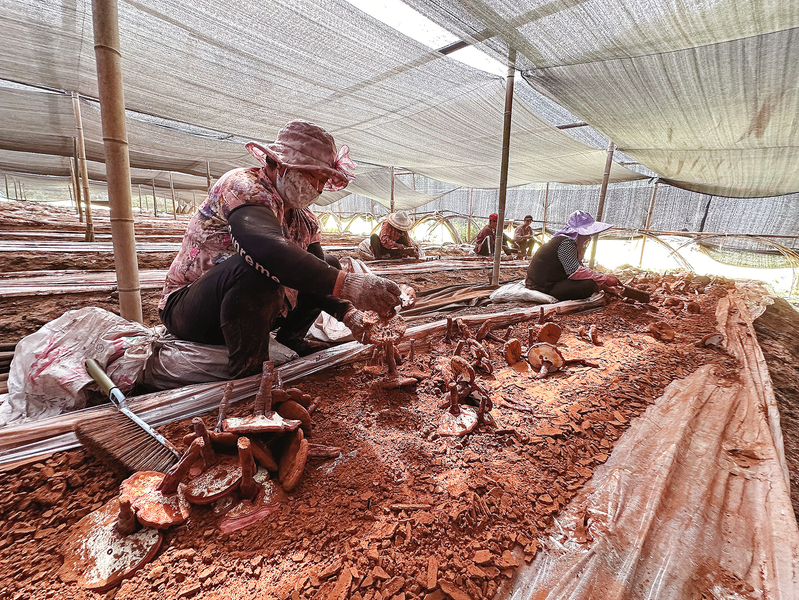 9月25日,商南縣青山鎮食用菌產業園中,工人正在采收靈芝粉。據了解,產業園的靈芝孢子粉種植基地占地100多畝,預計可產孢子粉4萬公斤,預計年產值6200萬元,帶動26戶群眾戶均年增收5000元以上。 (本報記者 胡 蝶 攝)