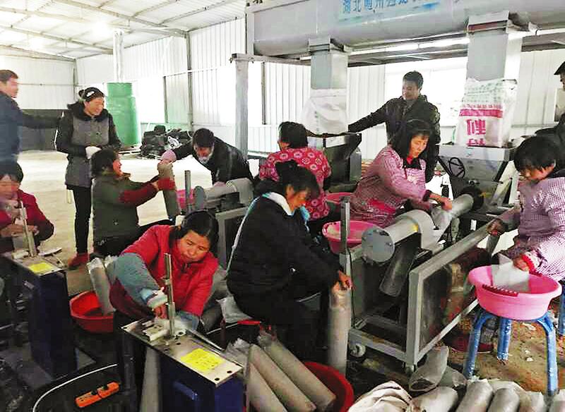 目前的君子澗村已經建成50萬袋反季節香菇基地,1000平方米的廠房里兩臺裝袋加工機器、3臺滅菌灶旺季一天可生產1萬袋菌種,同時建起了4個烘干爐和1個儲量5000公斤的冷庫。