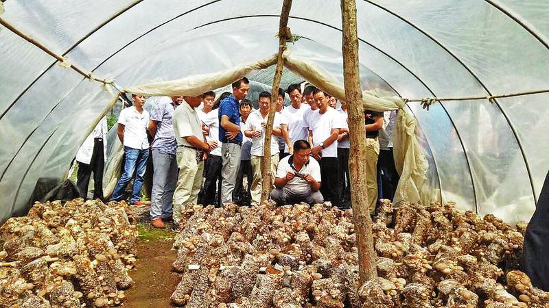 “四支隊伍”合計,要打消群眾的顧慮,必須要找到一個懂經營、會管理、有實力的帶頭人領著大家干。包扶部門山陽縣委組織部駐村工作隊和村干部一起先后6次到西安、寶雞等地,聯系本村在外致富能人,邀請他們回村興辦企業,帶領群眾發展產業。經過多次努力,大家終于引回了陜西豐陽實業有限公司董事長孫安勛。他是君子澗村向陽溝組村民,早年外出務工,通過自己的努力,經過十多年發展,從最早十多個人的建筑工隊發展成擁有300多名員工的集團公司。在他的公司里,有本村勞力130多人。孫安勛被駐村工作隊為群眾謀事的真誠打動,牽頭成立商洛市福臨緣種植養殖有限責任公司,在村上建起百萬袋反季節香菇生產基地。