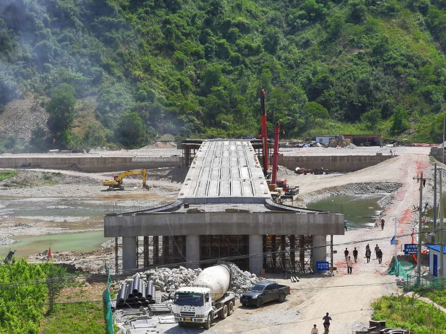 窯溝口村位于南寬坪鎮西南部,地域面積24平方公里,耕地1593畝,林地24139畝,轄7個村民小組342戶1245人。在大橋建設之前,全村人口僅靠一條鐵索橋出行,群眾的生產生活極其不便。金錢河大橋項目是南寬坪鎮2020年的重要脫貧攻堅工程之一。為了盡快完成項目建設,南寬坪鎮黨委、政府認真貫徹落實縣委、縣政府關于統籌疫情防控和復工復產有關要求,積極協調、全力保障,該項目于2月24日復工運行。