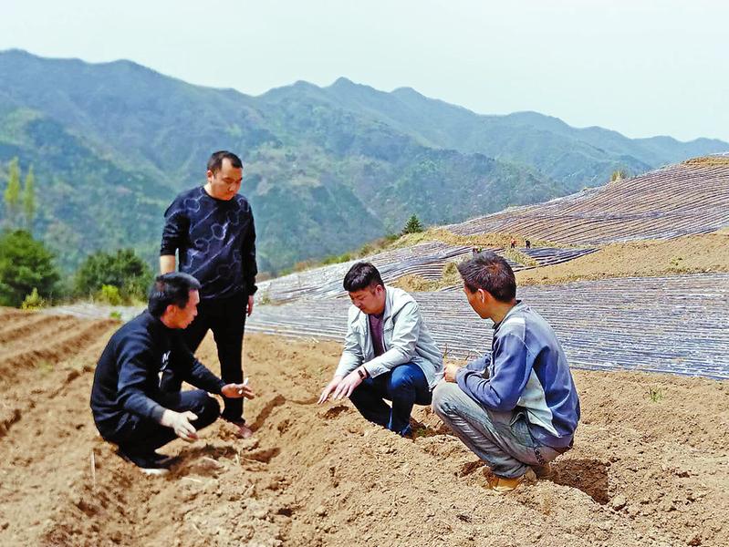 初夏時節,秦嶺深處的山陽縣小河口鎮馬家山村海拔1500米的前梁組山梁上,煙苗迎風舒展著嫩綠的葉子,長勢良好。煙農倪小明、倪德東正帶領工人在田間揭膜、除草,一派忙碌景象。