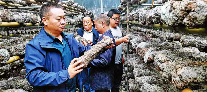 薛全峰和村“四支隊伍”在香菇產業園了解出菇情況