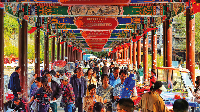 10月4日,山陽縣漫川古鎮(zhèn)游人如織。 (本報(bào)記者 楊 鑫 攝)
