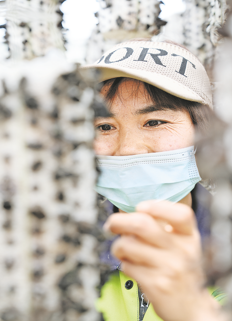 村民吳亞靜在家門口的商州區(qū)木耳產(chǎn)業(yè)示范園就業(yè),實(shí)現(xiàn)了掙錢顧家“兩不誤”。
