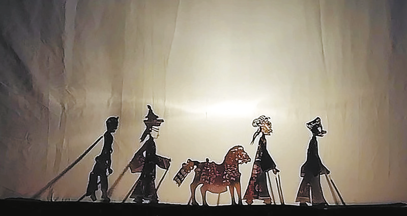 燈光熄滅,白色幕布亮起,在觀眾掌聲中,一場商州皮影戲拉開帷幕。幕布上,精致小巧的平面影人跟隨著劇情發展變換出不同的姿態和動作;幕布后,一個耍簽子的老人在燈光下用手操控著幾個不同的皮影偶人。