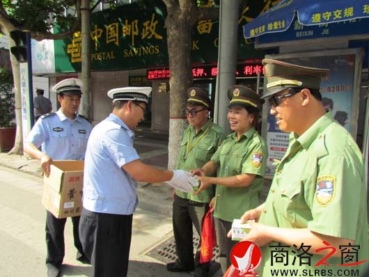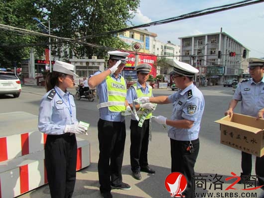 本網訊(王翼)連日來,天碧云淡,艷陽高照,商洛市公安局交警支隊商州大隊城區中隊民警仍一如既往的奮戰在三尺崗臺上。6月13日,商州交警大隊領導冒著酷暑高溫,看望和慰問全體執勤民警、交通協勤員,并為他們送去藿香正氣水、人丹等防暑藥品,勉勵大家不負眾望,努力工作,為廣大市民安全出行創造良好的交通環境。