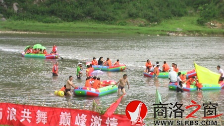 {圖片新聞:近日,烈日炎炎,洛南縣金三洲洛河漂流景區(qū)內(nèi),車水馬龍,游人如織,格外熱鬧,尤其是7月21日、29日,單日接待游客分別達(dá)260、280人次,屢創(chuàng)新高,累計接待游客3000人次,旅游收入10.5萬元。迎來開業(yè)以來的首次旅游高峰,實現(xiàn)洛河漂流旅游的開門紅。圖為游客盡情享受洛河漂流驚險刺激感受和沿線的迷人風(fēng)光。
