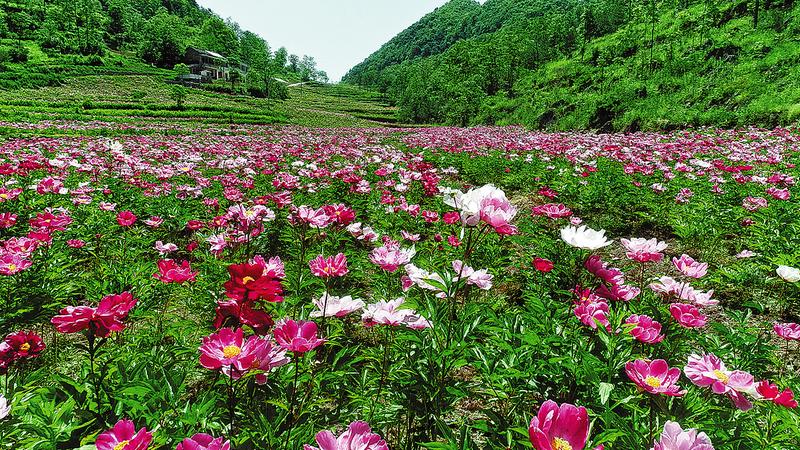 仲夏時(shí)節(jié),走進(jìn)鎮(zhèn)安縣西口回族鎮(zhèn)石景村的田間地頭,只見滿山遍野姹紫嫣紅的芍藥花正在競相開放,三五成群的工人穿梭在花叢當(dāng)中,有說有笑地采摘花朵,為寂靜的北陽山增添了一道亮麗的風(fēng)景線。