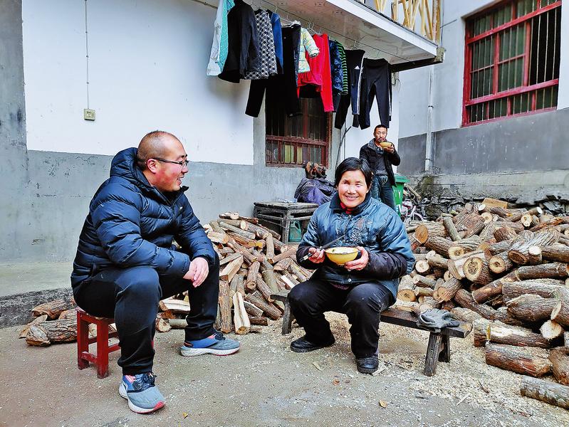 2018年冬季的一天,駐村工作隊一大早便入戶檢查全村的安全飲水問題。大家跑完了坡上的十幾戶人家,已到日落時分,都已疲憊不堪,但最偏遠的住在山頂的周力財家還沒有去,一個來回要走20里路。張樂讓大家先回去休息,自己堅持上山走訪完最后一家。見周力財家飲水安全達標,他終于放下了心,于是盤腿坐炕、端碗喝水、遞煙點火,詢問起他家種植的魔芋和板栗,親熱得像兄弟倆。聽到周力財說他家剛魔芋就賣了5萬塊錢,張樂又叮囑他抓緊給板栗樹進行科管。等張樂回到村上,已是晚上11點了。