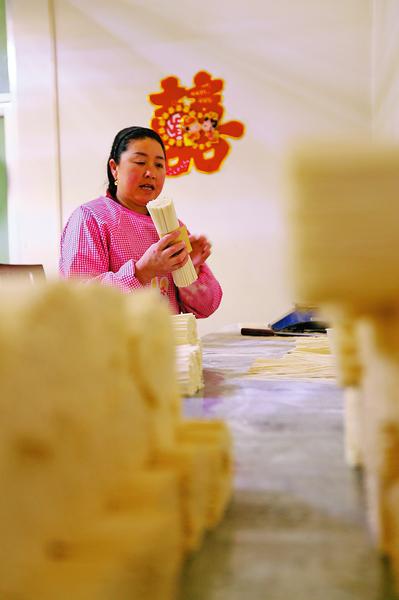 艾萬(wàn)玉檢查掛面質(zhì)量