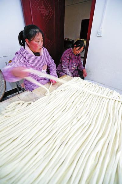 記者了解到,這兩戶人家不但掛面做得好,也十分注重品牌意識(shí)。他們將掛面分成不同類(lèi)型進(jìn)行包裝,再裝進(jìn)統(tǒng)一制作的禮盒內(nèi)推銷(xiāo),不但提升了手工掛面的“顏值”,也有效提高了銷(xiāo)量。制作手工掛面工序復(fù)雜,他們每天十分辛苦,晚上往往只能休息四五個(gè)小時(shí),但是制作傳統(tǒng)手工掛面是這兩戶人的主導(dǎo)產(chǎn)業(yè),也是他們邁上小康生活的希望。